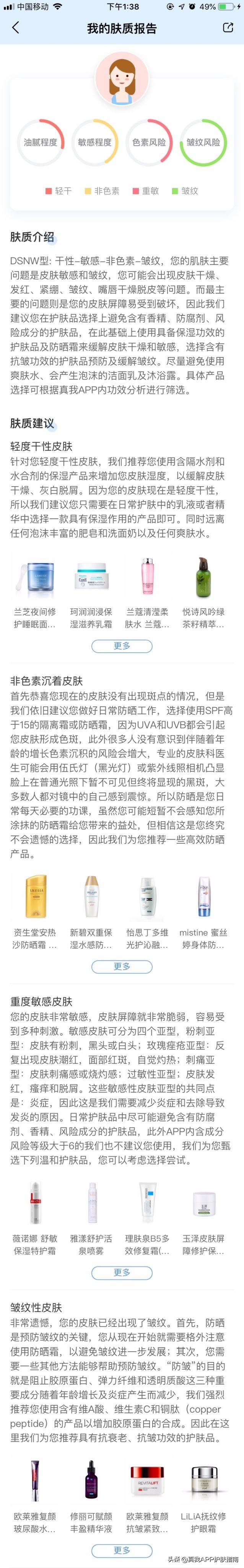 上圖是是小編真我app的中截取的膚質(zhì)測試結(jié)果,小編屬于干性敏感肌膚,因此在選擇潔面的時候,更偏重于氨基酸潔面,以小編為例,大家也對應(yīng)下自己適合哪種類型的潔面吧。