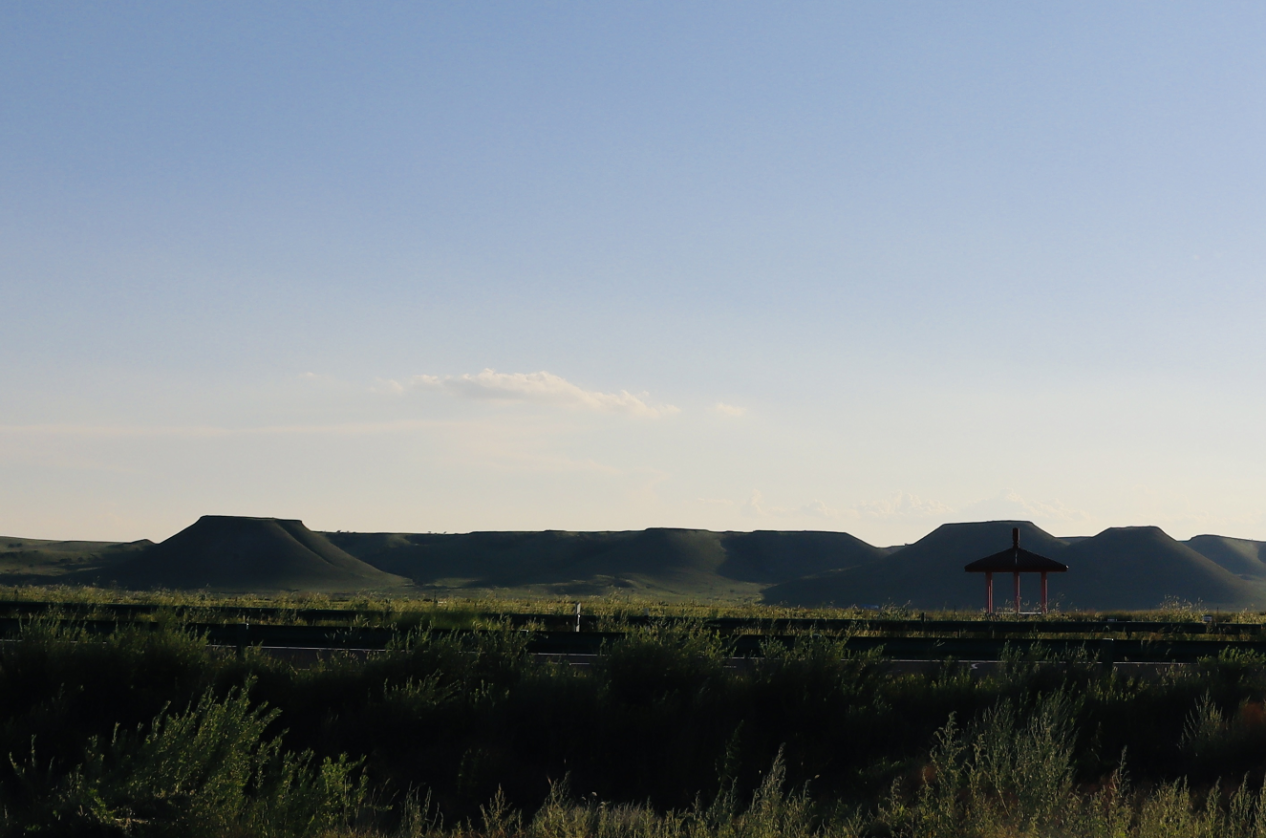 南行途中路遇平頂火山奇景。平頂山又叫貝勒克牧場,它由億萬年前火山噴發(fā)而成,遠遠望去,平坦的草原上呈現(xiàn)出10多座山頂平如刀削,山坡懸崖陡立,排列有序,在這片大草原中成了特立獨行的一片風景。平頂山是錫林郭勒大草原神奇的存在,據(jù)悉,它是目前國內一處火山與草原相結合的地質地貌。