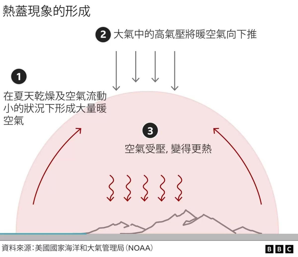 7月的英國是副熱帶高氣壓的主場,當副熱帶高壓長期控制某一地區(qū)時,往往會造成這個地方的長期高溫天氣,在這種情況下,熱空氣會被擠在下方,牢牢壓住困在一個位置,使這個位置的氣溫瘋狂飆升,這就是熱蓋應(yīng)。