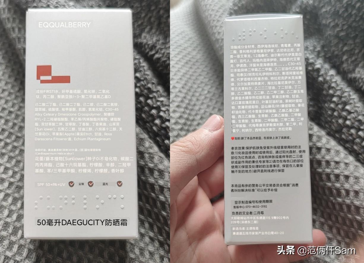 三,EQQUALBERRY的防水衣級防曬怎么樣?EQQUALBERRY是2021年韓國流行品牌,在韓國美妝綜藝get it beauty中曾獲得防曬盲測第一的表現(xiàn)。