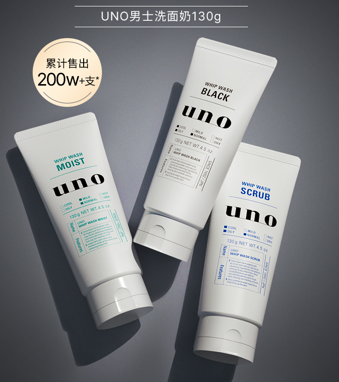 日本資生堂UNO吾諾活性炭男士洗面奶男專用潔面乳 控油除螨去黑頭 55元