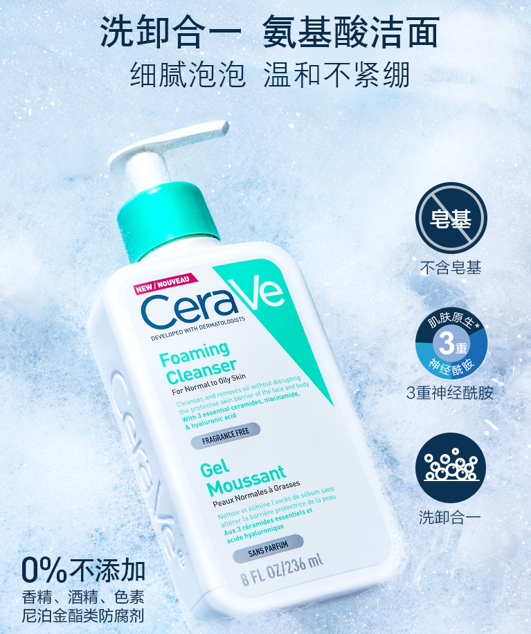 CeraVe補(bǔ)水保濕氨基酸洗面奶泡沫潔面 108元
