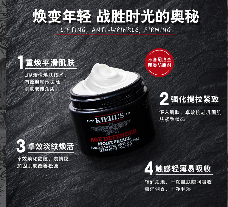 kiehls科顏氏男士淡紋緊實(shí)面霜 390元