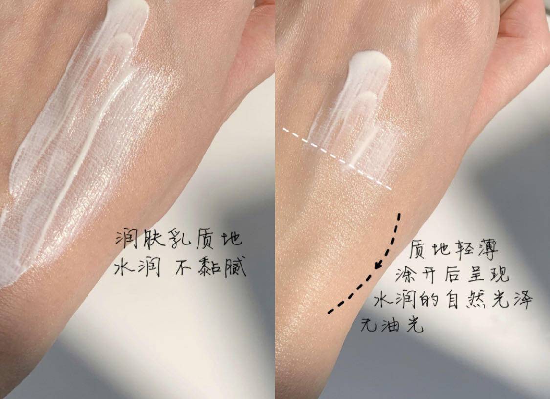 水,水得一塌糊涂,看圖上的質(zhì)地也能感受一二,但又不是那種一味追求輕薄水潤導(dǎo)致防護(hù)力下降的防曬。