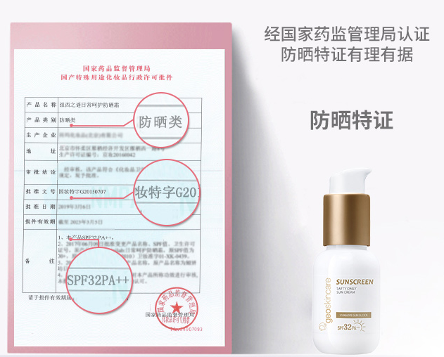 紐西之謎日常日常呵護(hù)防曬霜SPF32 PA++,作為日常防曬是夠的。擁有SGS防曬SPF認(rèn)證+防曬PA認(rèn)證,是一款獲得特殊用途化妝品批準(zhǔn)文號(hào)的防曬——【國妝特字G20150707】。