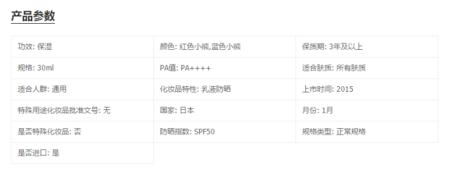 ▲防曬指數(shù):SPF50+、 PA++++