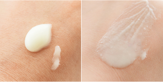 清爽的淡淡米色質地,有小小的顆粒,加上絲滑的冰淇淋觸感,輕輕一抹就推開了,抹開后很水潤,清爽又保濕O(∩_∩)O~