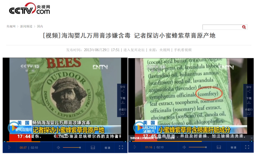 另外還要說明的是,“小蜜蜂紫草膏”中添加的紫草成分comfrey,屬于紫草科聚合草屬,并不是國內(nèi)藥用的新疆紫草或內(nèi)蒙紫草。不過國內(nèi)相關(guān)研究表明,在新疆紫草中以及內(nèi)蒙紫草的同屬植物中,同樣也發(fā)現(xiàn)了PAs成分。