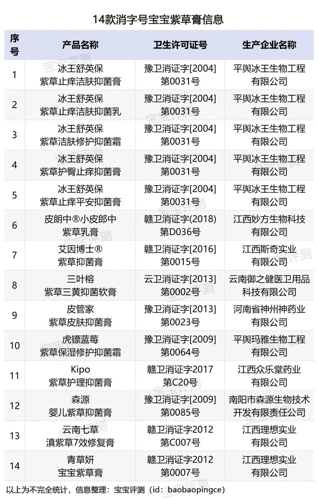 另外,針對妝字號的監(jiān)管抽檢也比消字號更嚴格。目前,有標準檢測辦法的糖皮質(zhì)激素有63種,在妝字號日常抽檢中,一般檢41種。而消字號產(chǎn)品雖然也禁止添加激素,但要求檢測的激素種類很少,日常抽檢基本上也較少涉及消字號產(chǎn)品。但是,并非妝字號產(chǎn)品中就不存在違禁添加激素的情況。上文中“紫娃牌紫草膏”就是一款妝字號產(chǎn)品。只不過相較于消字號,妝字號如果違規(guī)添加激素,那么商家面臨的風險會更大一些,因而妝字號出問題的概率會更低一些。笨爸爸整理了一部分網(wǎng)購平臺有售的消字號寶寶紫草膏產(chǎn)品名單,供大家參考。并不是說這些消字號產(chǎn)品一定添加了激素,但如果給寶寶使用后,果立竿見影特別好,則應(yīng)多加小心,妝字號也同理。