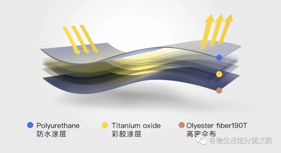 日常溫度35°左右的酷夏,有阻擋高達99%的紫外線及可見光,傘外傘內(nèi)溫差瞬間下降10°。