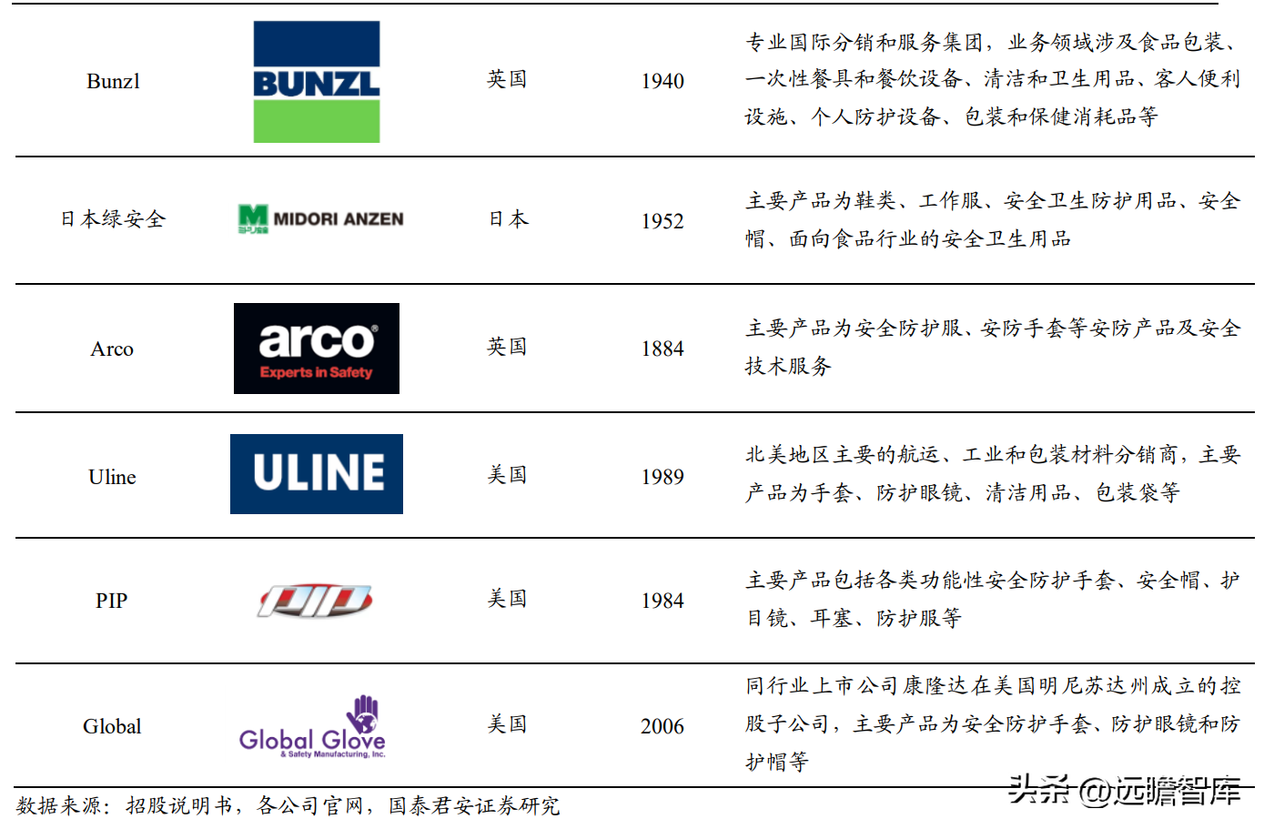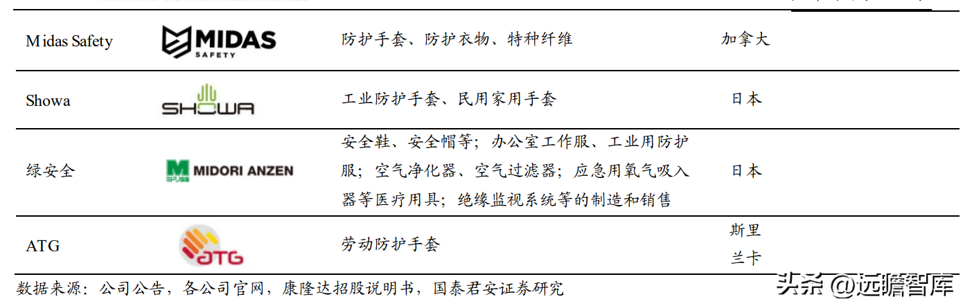 國外銷售安防手套的知名品牌包括 美國的 3M、Honeywell、PIP,澳洲的 Ansell,法國的 DELTAPLUS,日 本的 Showa、綠等,上述品牌大多銷售全身防護產(chǎn)品,并非單獨銷售安防手套。國外品牌多采用主動推廣的模式,如 3M 通過政府搭橋,前往客戶工廠培養(yǎng)工作人員的操作規(guī)范、宣傳手部安防理念,推廣高端 防護手套產(chǎn)品,從而帶動安防產(chǎn)品的銷售。