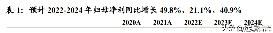 盈利預(yù)測:根據(jù)上述假設(shè),我們預(yù)計 2022-2024 年公司營業(yè)收入分別為 8.88、15.87、23.52 億元,分別同比-6.5%、+78.7%、+48.2%;歸母凈利潤分別為 1.39、1.68、2.37 億元,分別同比+49.8%、+21.1%、+40.9%。