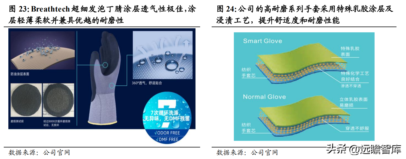 公司深耕行業(yè)多年,手套核心工藝優(yōu)勢突出。公司多年深耕高性能手套制造領(lǐng)域,積累了豐富的經(jīng)驗,生產(chǎn)技術(shù)優(yōu)勢及產(chǎn)品優(yōu)勢凸顯: