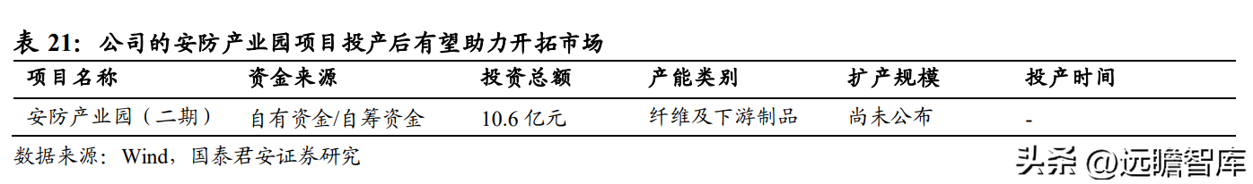 超高分子量聚乙 烯纖維應(yīng)用廣泛,市場供不應(yīng)求。2018 年公司成立恒尚新材料,實現(xiàn)向產(chǎn)業(yè)鏈上游延伸,其中一期 600 噸產(chǎn)能已于 2021 年投產(chǎn),二期 2400 噸預(yù)計于 2022 年底投產(chǎn)。隨著新產(chǎn)能逐步釋放,公司利潤有望顯著增厚。未來恒越產(chǎn)業(yè)園(二期)將進一步規(guī)劃擴充纖維及其復(fù)合材料制品產(chǎn)能,新材料業(yè)務(wù)有望成為公司的第二增長曲線,持續(xù)鞏固公司在個體安防領(lǐng)域的核心競爭力。