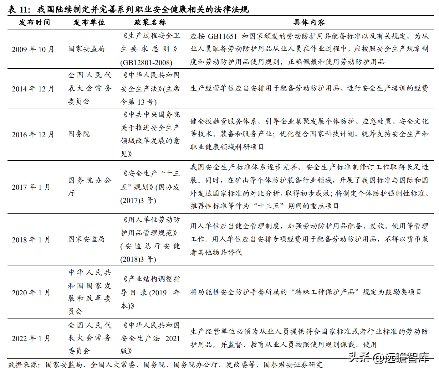 自 2009 年以來,我國陸續(xù)發(fā)布了《生產(chǎn)過程尾聲要求總則》《生產(chǎn)法》等法律法規(guī),通過一系列政策指引,提升生產(chǎn)型企業(yè)配備勞動防護用品、進行生產(chǎn)培訓(xùn)、保護從業(yè)人員的意識。