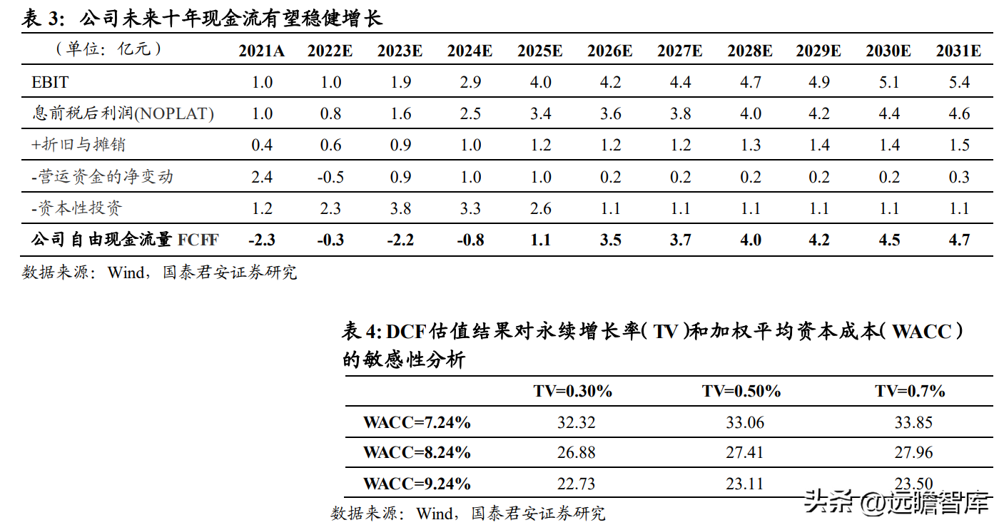 由于公司現(xiàn)金流較為充裕,同時可預(yù)測性較強,適用于 DCF 估值。