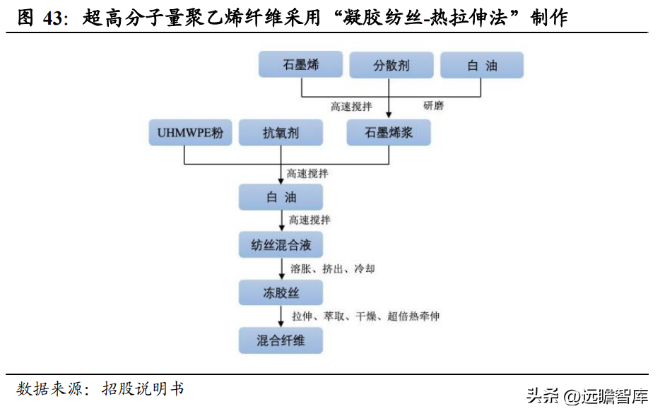 為保障供應(yīng)的穩(wěn)定性,降低生產(chǎn)成本,提升產(chǎn)品競爭力,2018 年公司成立恒尚新材料,專 門從事 UHMWPE 纖維的生產(chǎn)和經(jīng)營,采用國外較為成熟的“凝膠紡絲-熱拉伸法”工藝,由 UHMWPE 粉制(PE 粉)作 UHMWPE 纖維,并在 該基礎(chǔ)上添加石墨烯等改性材料,進一步提升抗切割性和穿戴舒適度。