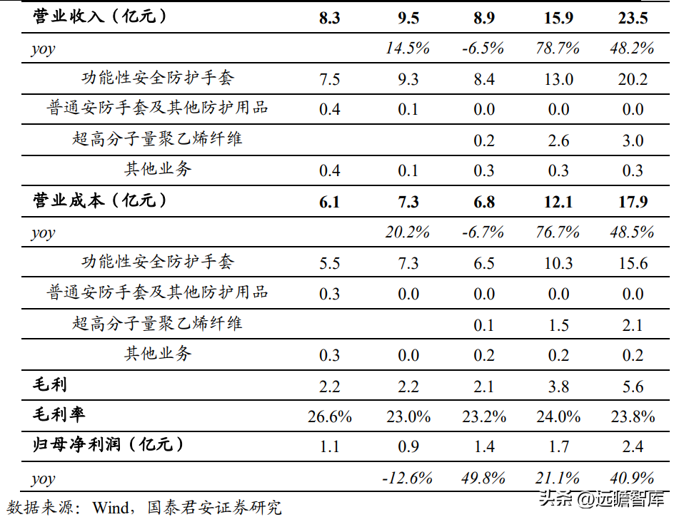 2021 年公司在創(chuàng)業(yè)板上市。截至前,公司擁有 1800 萬打手套產(chǎn)能以及 600 噸超高分子量聚乙烯纖維產(chǎn)能。