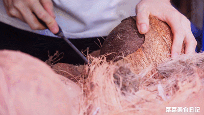 買個(gè)椰子,店家會(huì)免費(fèi)幫你開殼、去皮,回到家倒出椰子水,椰肉切條就能直接做椰子雞啦。