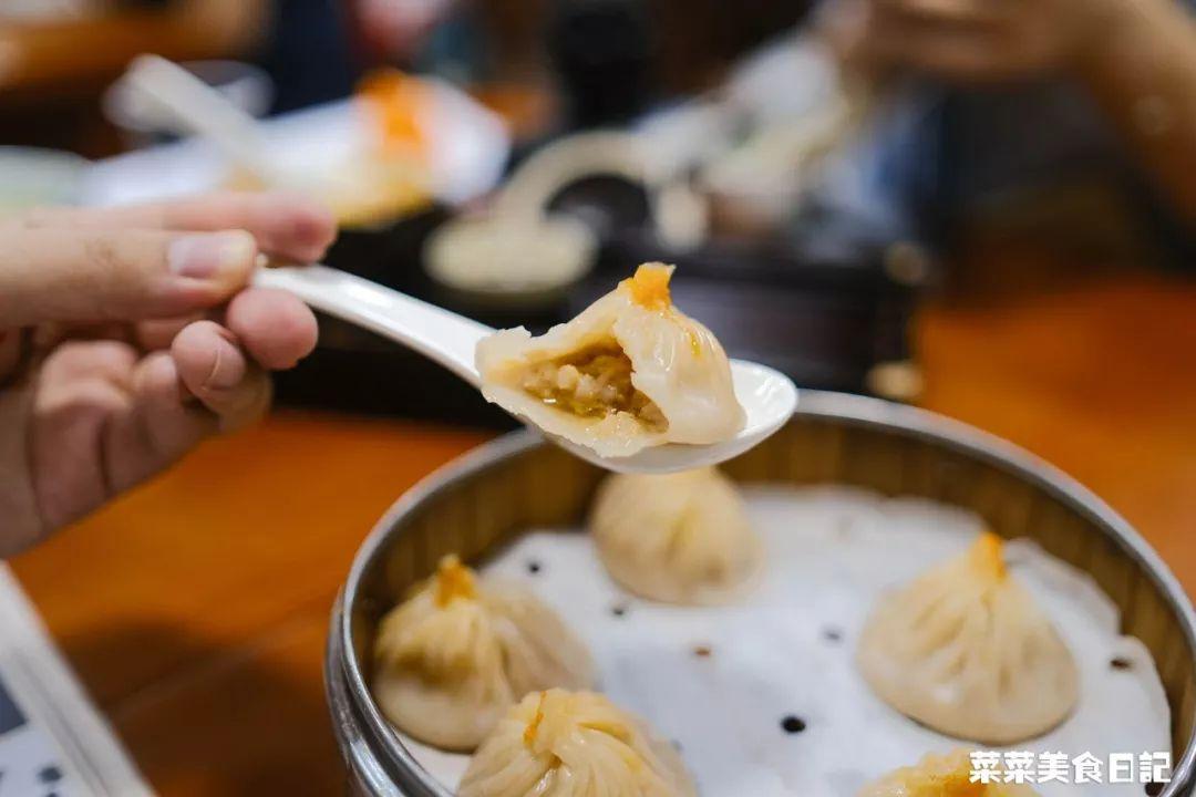 蟹粉小籠包可以喝到鮮美的湯底,里頭有絲絲縷縷的蟹肉和鮮香的蟹粉。