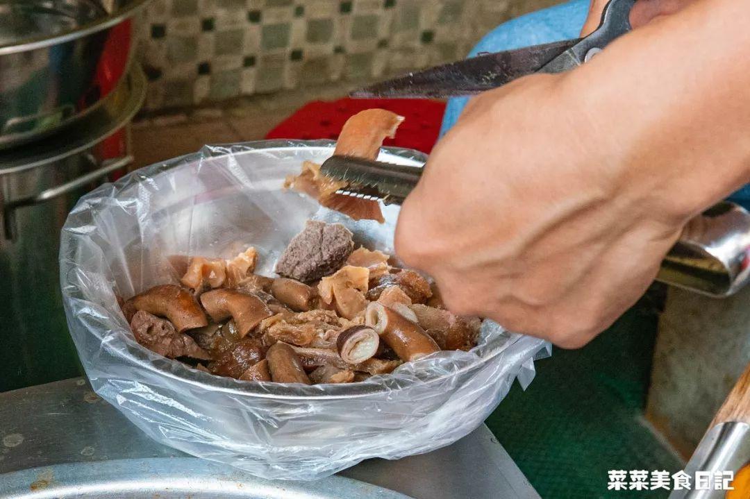 牛腸、牛肚、牛心……滿滿當(dāng)當(dāng)?shù)財(cái)D在盆里,鹵水色澤濃郁,藥膳味很足。
