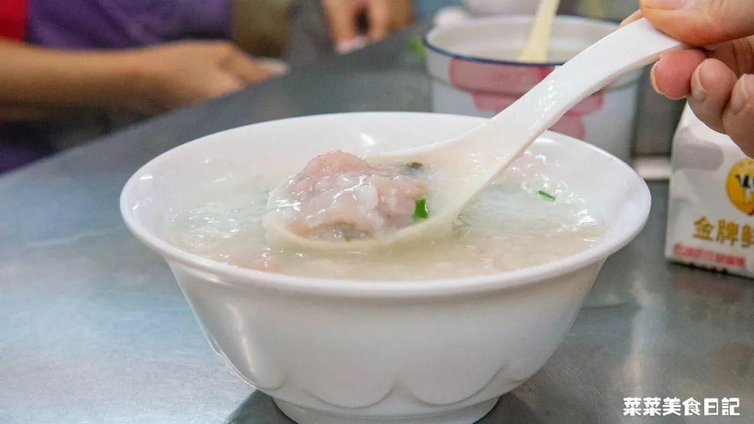 伍湛記的及弟粥,米香、豬雜香、蔥香合在一起,又很有層次,豬雜脆口,丸子扎實(shí),很正!