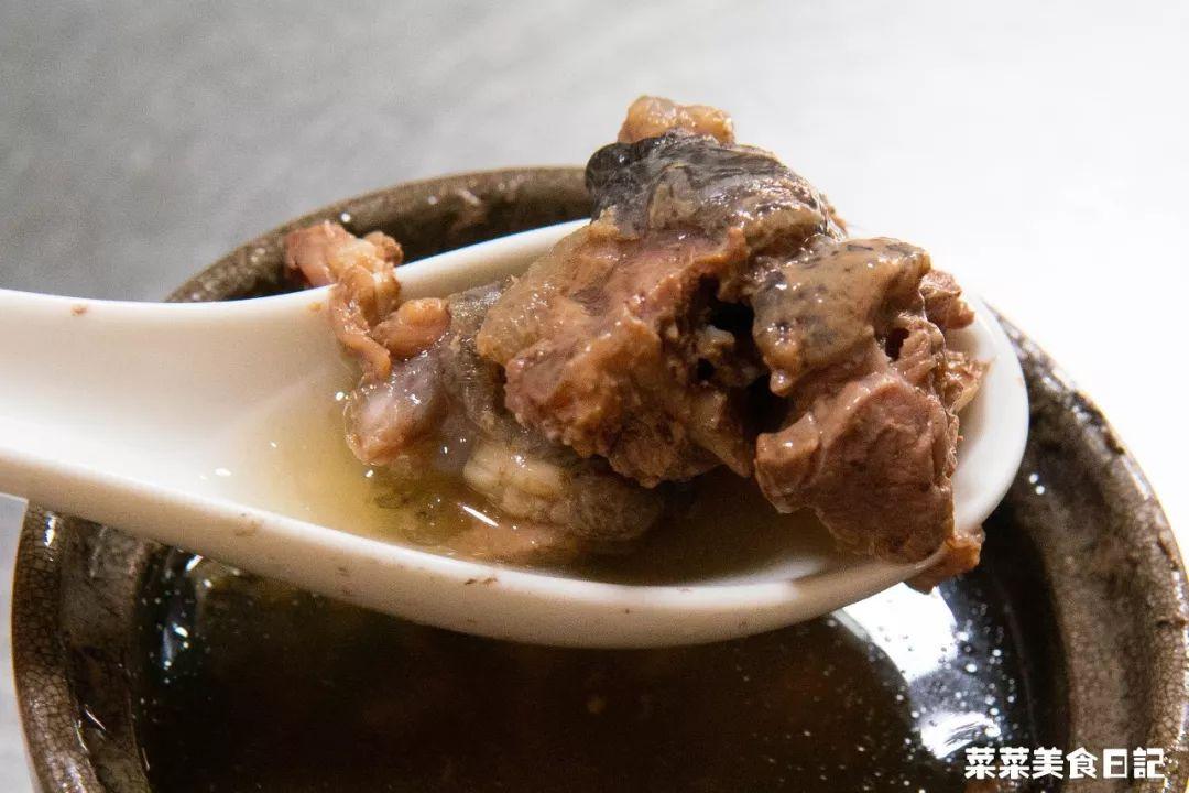他們家的鱷魚肉,口感有點(diǎn)像海咸魚,為了蓋住腥味,湯水里的酒味和醬油味也會(huì)下得比較重。