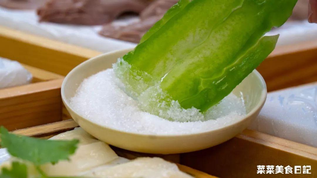 吃的時(shí)候要蘸著白糖吃,苦味被很好地中和掉,吃起來(lái)沙沙的,爽脆多汁又無(wú)渣。若是你不愛吃苦瓜,這份冰鎮(zhèn)翡翠,說(shuō)不定能讓你邊吃邊喊“真香”哦~