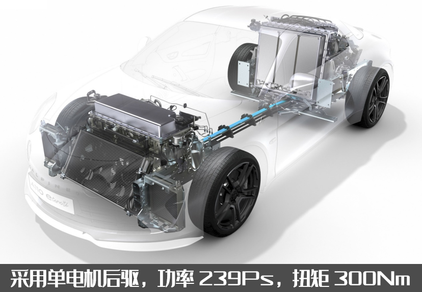 據(jù)官方介紹,Alpine A110 E-ternite概念車針對輕量化設(shè)計(jì)做出了努力,除車頂外殼材料使用了碳纖維材質(zhì)外,其余部分大面積采用輕質(zhì)化的亞麻纖維材料,因此僅比內(nèi)燃機(jī)版本車型重量增加了258kg,共計(jì)1378kg,新車采用單電機(jī)后驅(qū)布局,功率239Ps,扭矩300N·m,通過新開發(fā)的雙離合變速箱傳遞動(dòng)力,零百加速為4.5s。