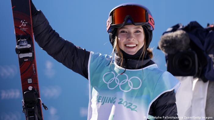 自由式滑雪女子空中技巧得主徐夢(mèng)桃,今年戴的Uvex的頭盔和雪鏡上場(chǎng),金色看上去霸氣。