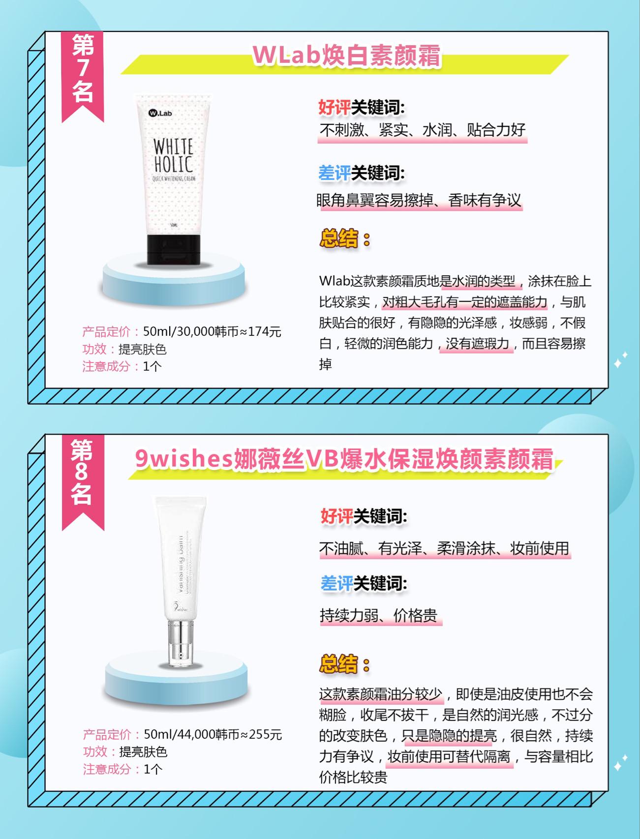 3月更新的韓國網(wǎng)友投票選出的“春季愛素顏霜top10”:.