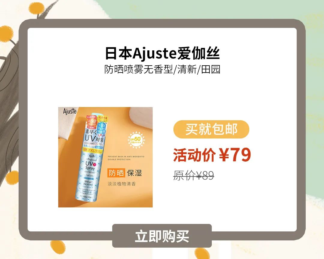 Ajuste是日本一個專門做戶外防曬噴霧的牌子,他家的這款防曬噴霧火好幾年了,很多知名雜志都有推薦。在國內(nèi)外賣得特別火爆,李佳琦、薇婭都愛直播間推薦過(據(jù)說6分鐘內(nèi)就銷售了2.5W瓶),還有上海衛(wèi)視電視導(dǎo)購30分鐘直接售空1.5W瓶!