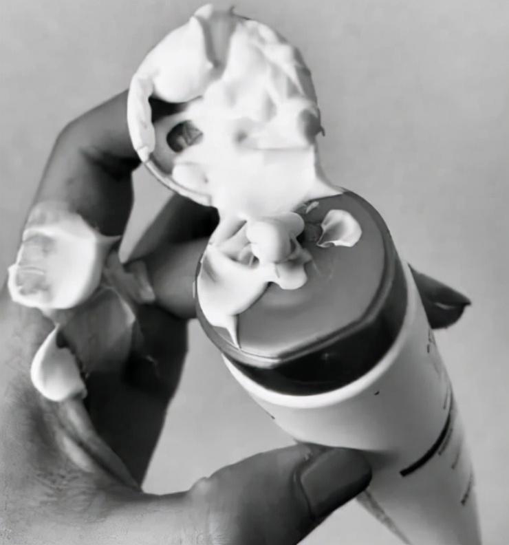 當(dāng)化妝品從低海拔地區(qū)運(yùn)輸?shù)礁咴臅r(shí)候,由于高原上的氣壓要低一些,內(nèi)壓就大于外壓,氣體必然要從壓力大的包材內(nèi)部向壓力小的外界擴(kuò)散。根據(jù)流體力學(xué)的運(yùn)動(dòng)規(guī)律,流體的流速和截面積成反比。如果包材的出口比較狹窄,比如像軟管之類的管口,其截面積相對(duì)于管身突然變小,流速會(huì)急劇增大,就容易將管內(nèi)的乳霜奶蜜等流體狀內(nèi)容物帶出來,也就是下圖所示的現(xiàn)象。
