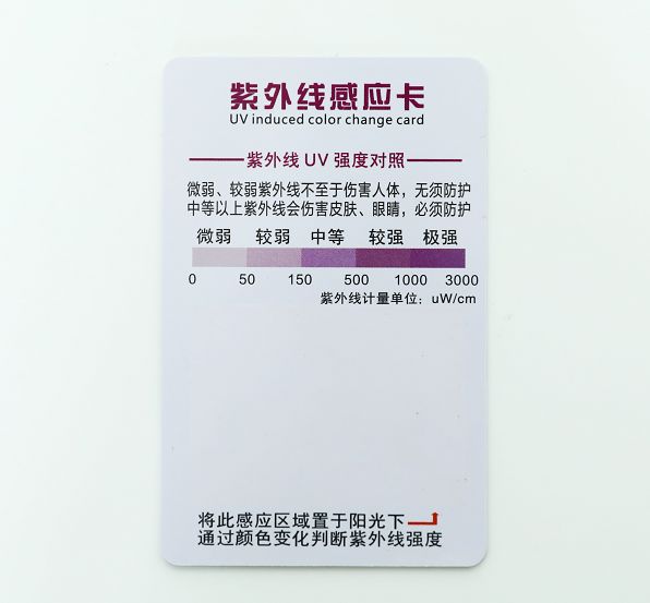 卡片感應(yīng)區(qū)域顯示為淺紫色。數(shù)值約在150~1000uW/cm左右:表示沒有遮擋紫外線極強。
