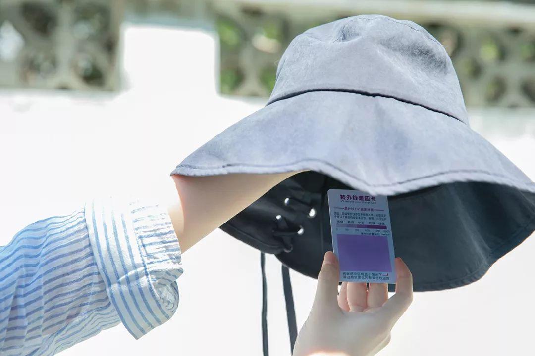 用紫外線測試卡測試一下帽子遮擋部分的防曬果。