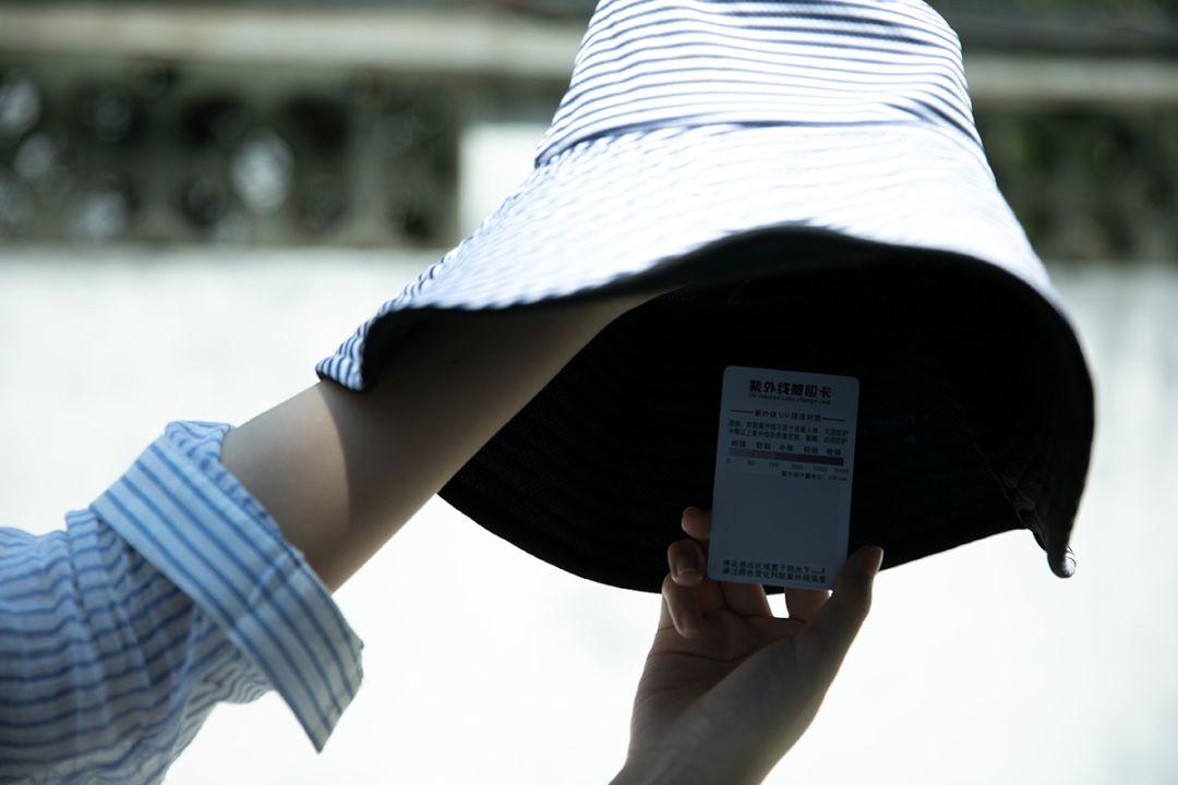③ 我們將紫外線測試卡放在UVCUT防曬帽遮擋范圍內(nèi)。