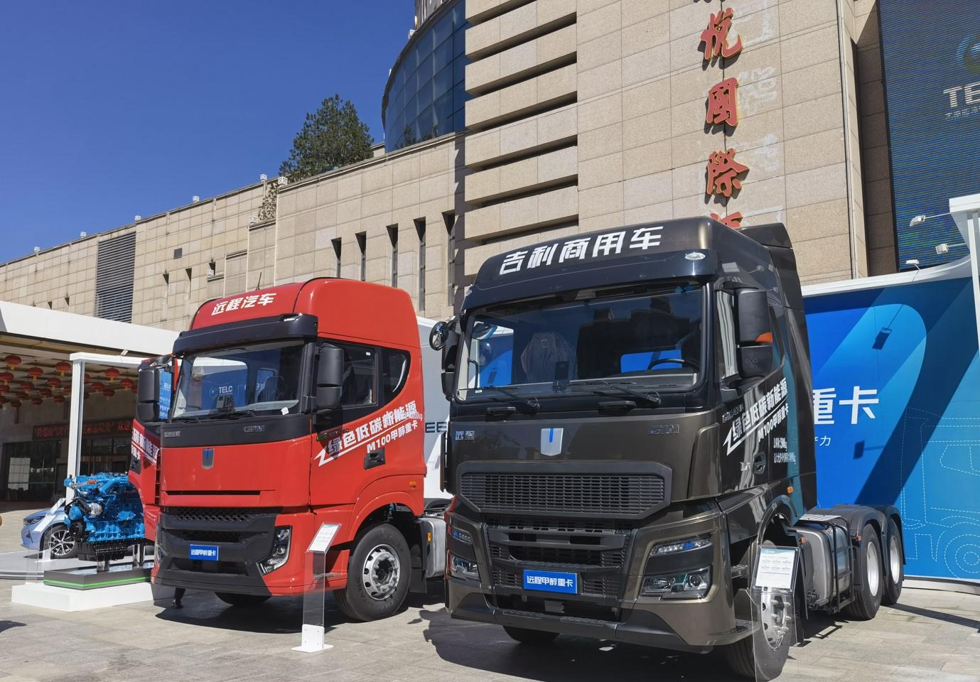 晉中基地生產(chǎn)的新一代吉利遠(yuǎn)程甲醇重卡亮相。新京報貝殼財經(jīng)記者 白華兵 攝