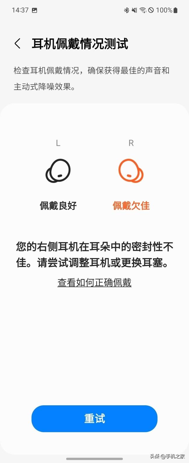 三星Galaxy Buds2 Pro的單耳5.5g的重量配上親膚的觸感,再加上經(jīng)過人體工學(xué)優(yōu)化后的造型設(shè)計(jì),尺寸比Galaxy Buds Pro縮小15%。落實(shí)到實(shí)際佩戴時(shí),像我這樣耳朵極為挑剔的用戶,戴上后也會(huì)感覺到滿意:耳機(jī)的導(dǎo)管長(zhǎng)度適中,搭配合適的耳塞能將耳機(jī)牢牢的固定在耳道內(nèi)。配合新型通風(fēng)孔和進(jìn)氣格柵的設(shè)計(jì),長(zhǎng)時(shí)間佩戴也不會(huì)產(chǎn)生不適感。進(jìn)入到手機(jī)的操作界面,我們還可以檢測(cè)耳機(jī)的佩戴果,以便能調(diào)整到佳的佩戴狀態(tài)。