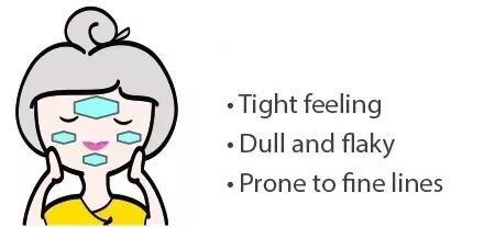 主要表現(xiàn)為皮脂分泌減少,皮膚干燥,缺乏油脂,膚質(zhì)比較細,而毛孔也不,洗臉之后有緊繃感。對外界的一些刺激,比如氣候、溫度的變化比較敏感,容易出現(xiàn)皮膚的龜裂或者脫屑,還有皺紋。