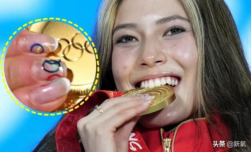還有谷愛(ài)凌的五環(huán)美甲,大概就是實(shí)力carry了美麗與實(shí)力的匹配度吧