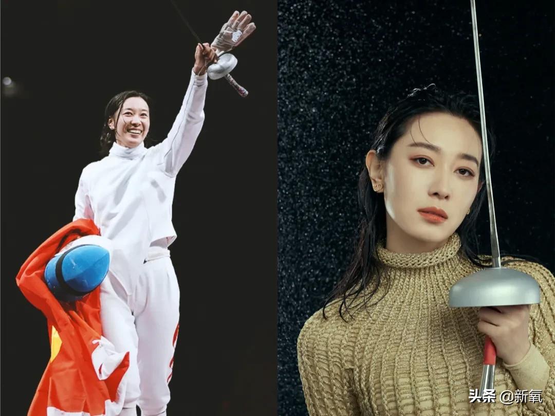 同樣是拿著劍,一張是站在奧運(yùn)獎(jiǎng)臺(tái)的「汗水濕發(fā)」,一張則是高級(jí)硬照的「氛圍濕發(fā)」。