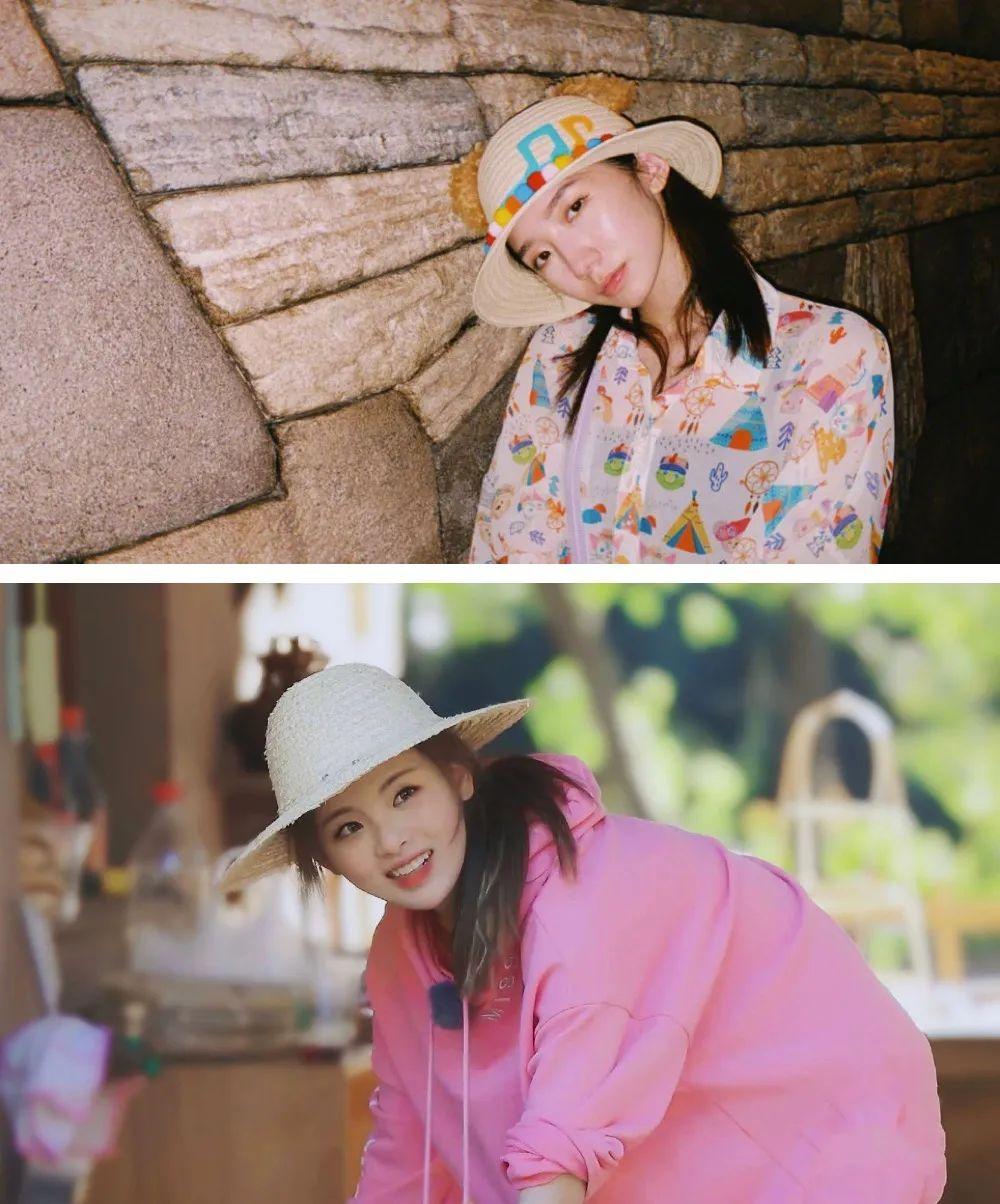 彩色毛球點綴的穹頂寬檐帽把孟美岐的俏皮流露無疑,回歸質(zhì)樸的穹頂寬檐帽則把楊超越的小清新展示出來!