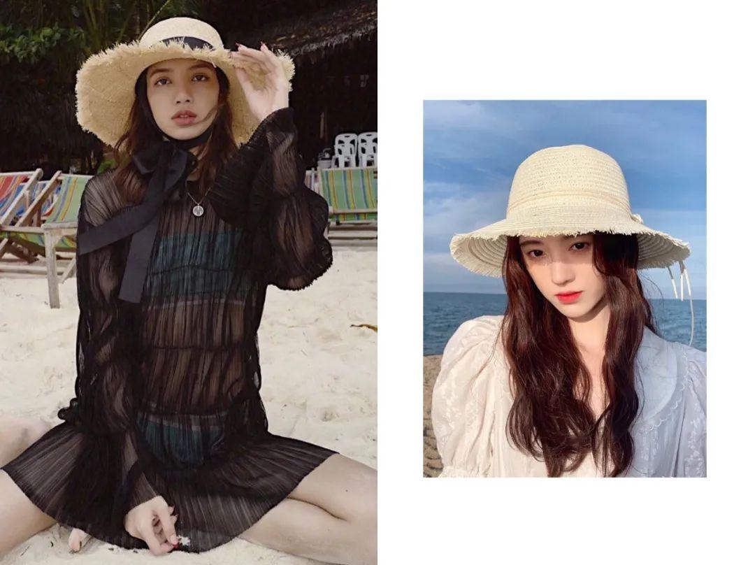 毛邊的穹頂寬檐帽有一種質(zhì)樸的隨性感,恰好與紗裙的柔美互相反襯,Lisa和鞠婧祎都這樣搭!