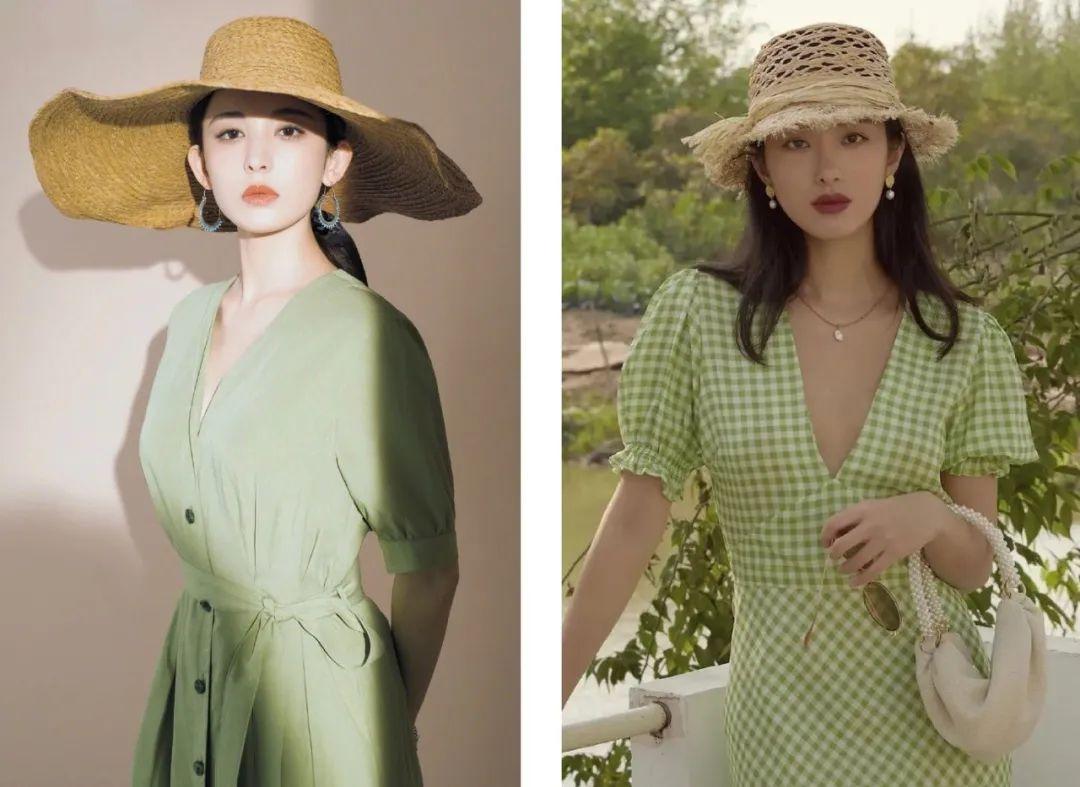 草帽的原色黃與V領連衣裙的田園綠可謂絕配,古力娜扎和楊采鈺都穿出了清新大方的感覺!