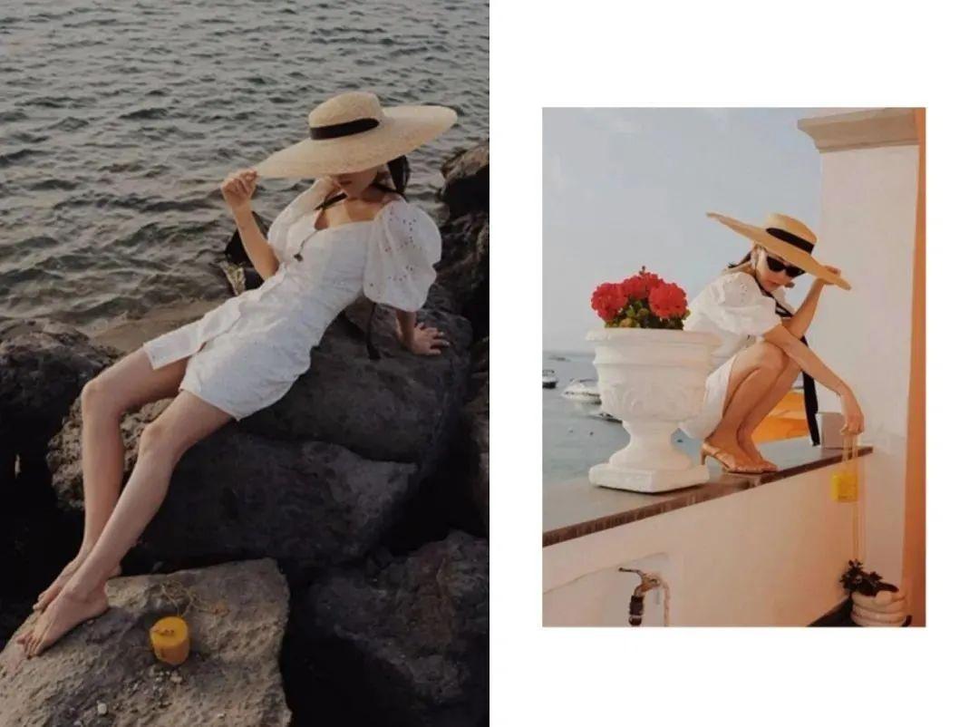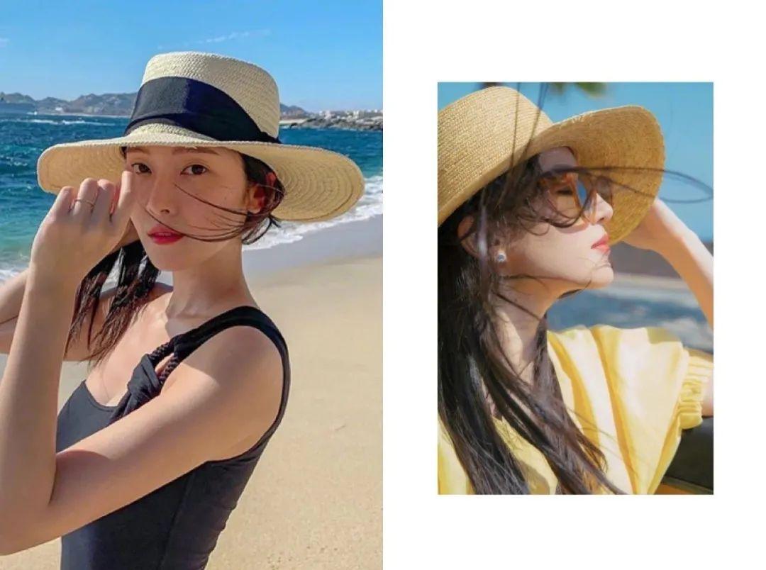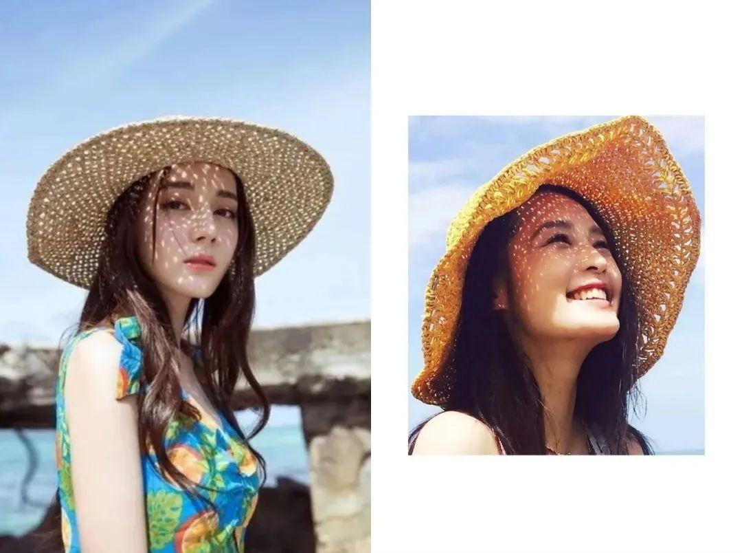 編織縫隙較大的網(wǎng)洞草帽讓陽光斑駁而下,把迪麗熱巴和李沁的文藝范兒也烘托出來!