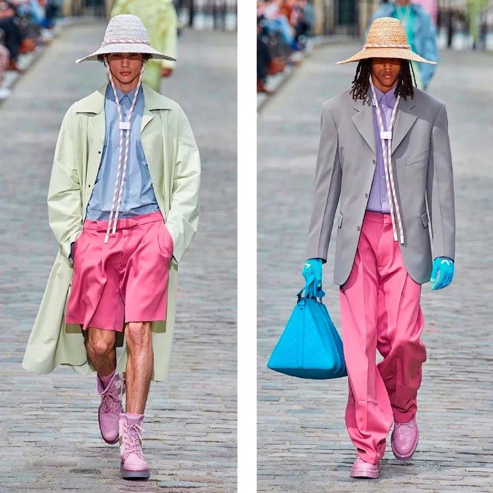 布置在帶有咖啡館風情的Place Dauphine上,Louis Vuitton 2020春夏秀場上展示了伴有狹長帽繩的尖頭弧頂?shù)膶掗苊?,并以米白、薰衣草紫、藍莓黑等漿果色演繹,平衡了街頭與華麗兩種看似矛盾的氣質(zhì)!