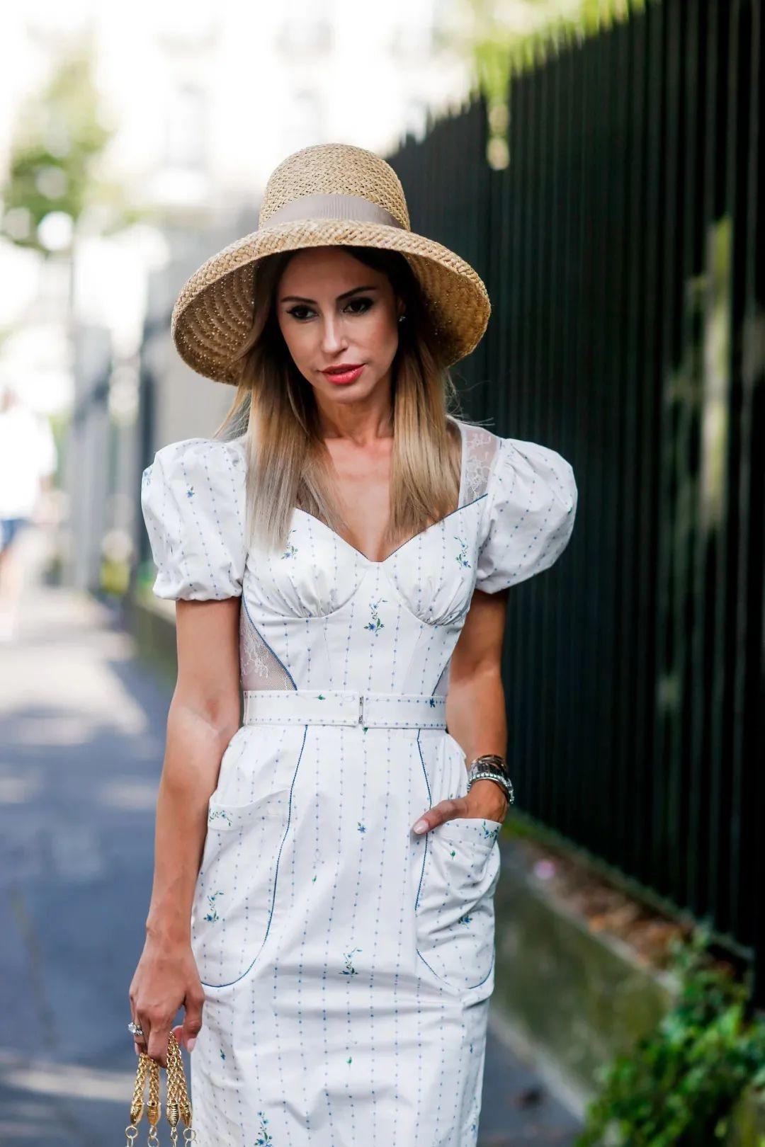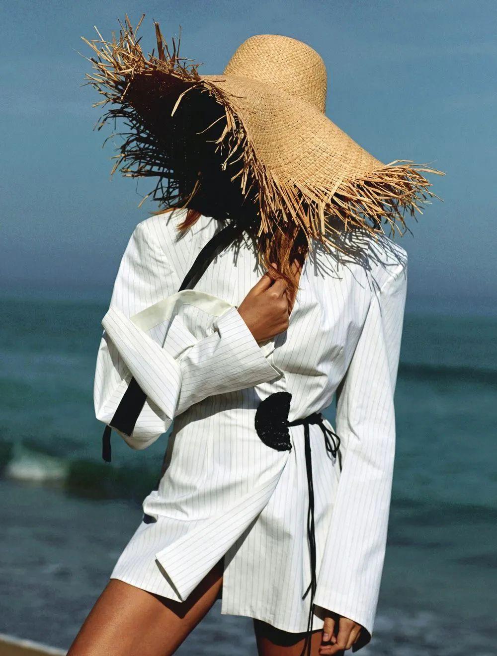 其中,俄羅斯名媛LenaPerminova也曾頭戴Ruslan Baginksiy牛仔帽形草帽,下搭米色狩獵風綁帶連衣裙,氣質(zhì)熱烈又優(yōu)雅!而廓形寬大并可隨心造型的Maxi寬檐帽也被新加坡時尚博主Yoyo Cao上身,與Fendi草編Peekaboo包相得益彰!