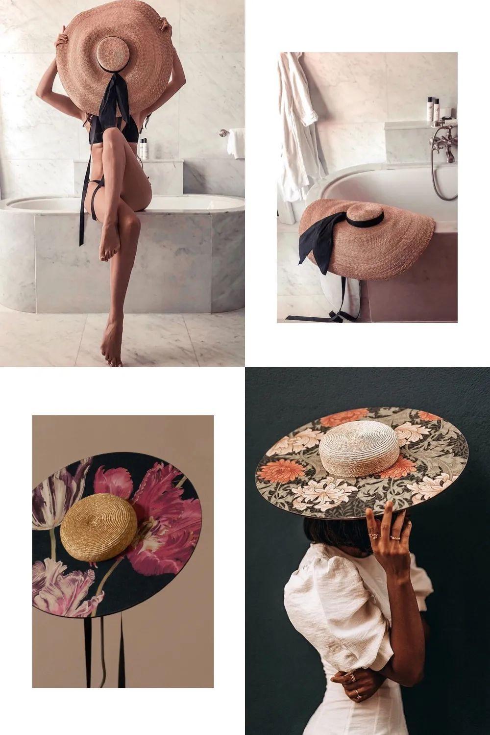 秉持著對手工工藝的浪漫主義之追求,Elisabet Urpi和Nacho Umpierrez在巴塞羅那創(chuàng)辦了品牌Eliurpi,其圓輪一般令人超乎想象的薄頂寬檐帽摩登有型,喜馬拉雅鹽粉色飄帶款唯美爛漫,古早花卉印花款秀雅脫俗!
