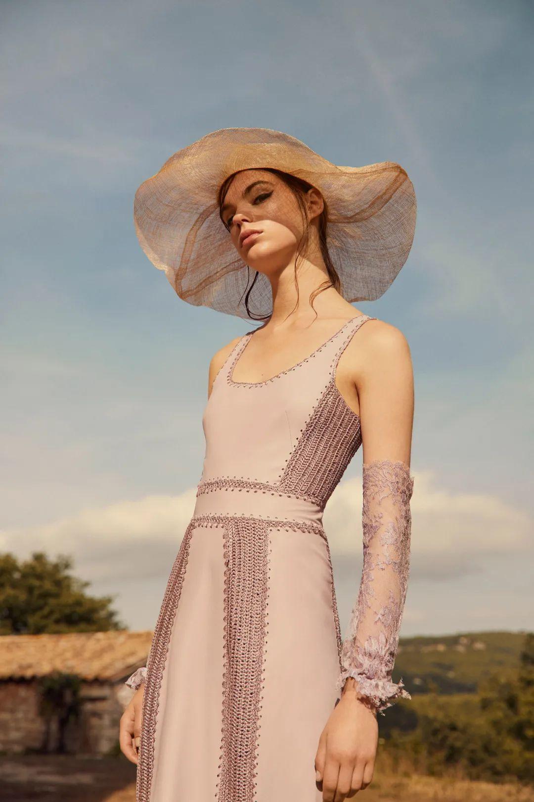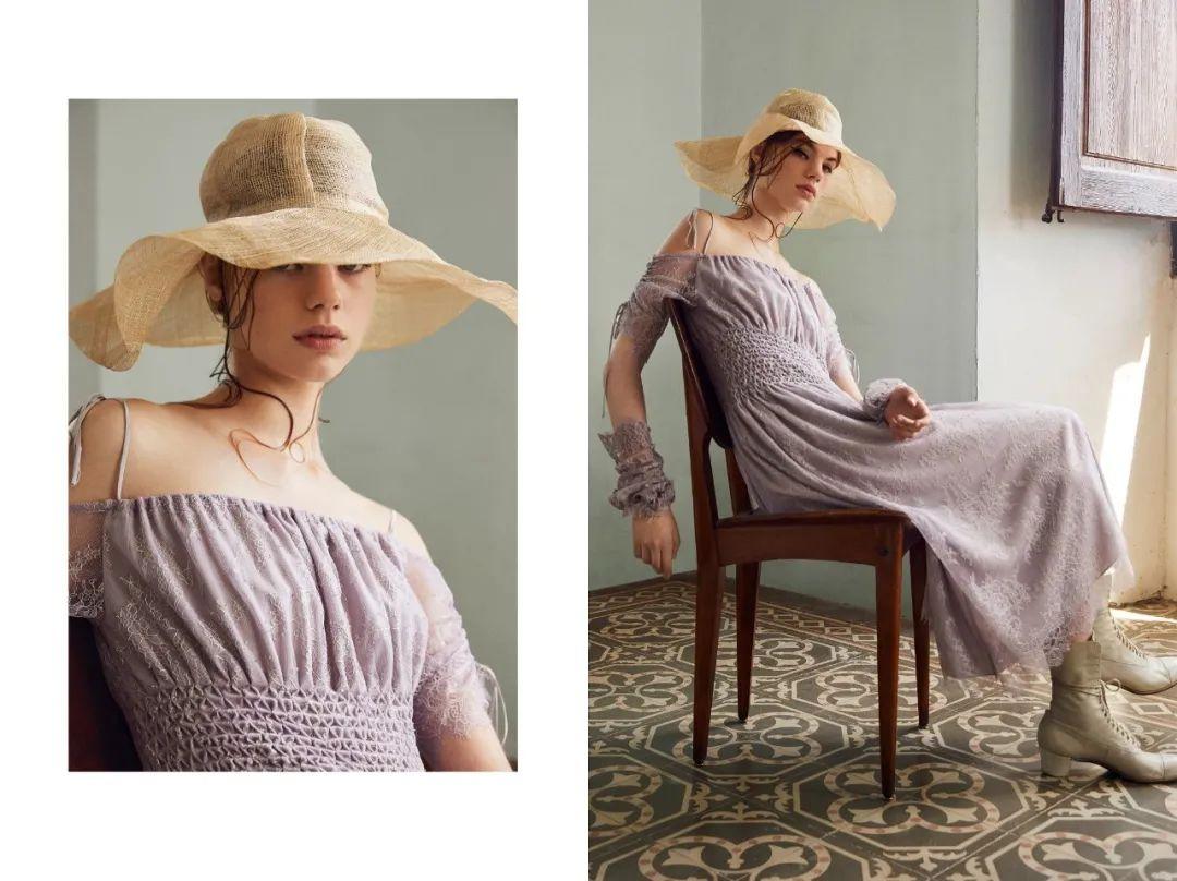 比如品牌標志性的波浪邊寬檐草帽,帽檐自然下垂,形成幾何趣味造型,材質(zhì)更是輕如細紗,薄如蟬翼,涼爽透風,視覺上輕盈而仙氣四溢!