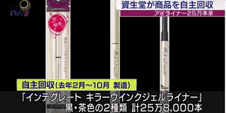還有今年2月27日,資生堂INTEGRATE眼線筆因?yàn)椴糠制茡p,緊急召回了25萬8000支問題產(chǎn)品。